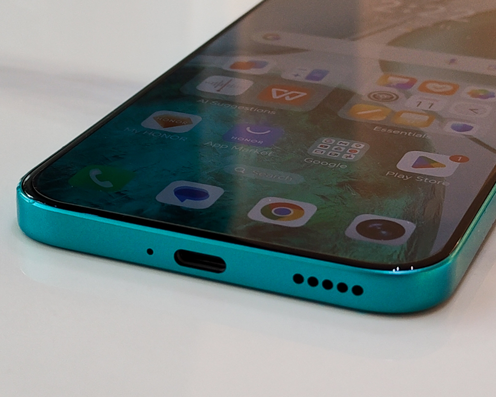 The HONOR X8c impresses at first glance, especially in the Marrs Green variant. The glossy finish adds a touch of elegance, while the subtle color shifts under different lighting conditions make it visually appealing. The phone feels light yet sturdy, striking a balance between portability and durability.