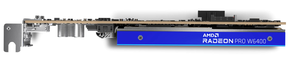 | AMD Radeon PRO W6400 | 768 (12 CUs) | Up to 3.54 (FP32) Up to 7.07 (FP16) | 4GB @ 16Gbps | 16MB | 128 GB/s | 64-bit | 2x DisplayPortâ„¢1.4 with DSC and audio support |